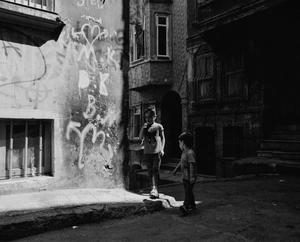 Mihriban es más pequeño: tiene nueve años y vive con su madre, su padre y dos hermanos pequeños en un barrio histórico detrás de la mezquita de Süleimaniye, en Estambul. La calle está flanqueada por las ruinosas fachadas de las viejas casas tradicionales que un día fueron símbolo de la prosperidad de la ciudad, y ahora permanecen abandonadas y decrépitas. Su padre y su madre trabajan muchas horas en la iglesia local, lo que quiere decir que Mihriban no puede ir al colegio y, en vez de ello, pasa los días en un caluroso sótano cocinando, limpiando y cuidando de sus dos hermanos. Hoy es domingo, así que su madre está en casa y puede ayudar a cuidar de él. Son una familia kurda originaria de Kobane —una ciudad siria actualmente bajo control de la milicia kurda Unidades de Protección Popular— que huyó cuando el Estado Islámico sitió la población en septiembre de 2014.