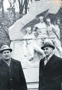 Goncharenko y Sviridovsky, los dos sobrevivientes junto al monumento