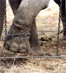 Durante la función, la enorme bestia hacia despliegue de peso, tamaño y fuerza descomunal… pero después de su actuación y hasta un rato antes de volver al escenario, el elefante quedaba sujeto solamente por una cadena que aprisionaba una de sus patas a una pequeña estaca clavada en el suelo.
