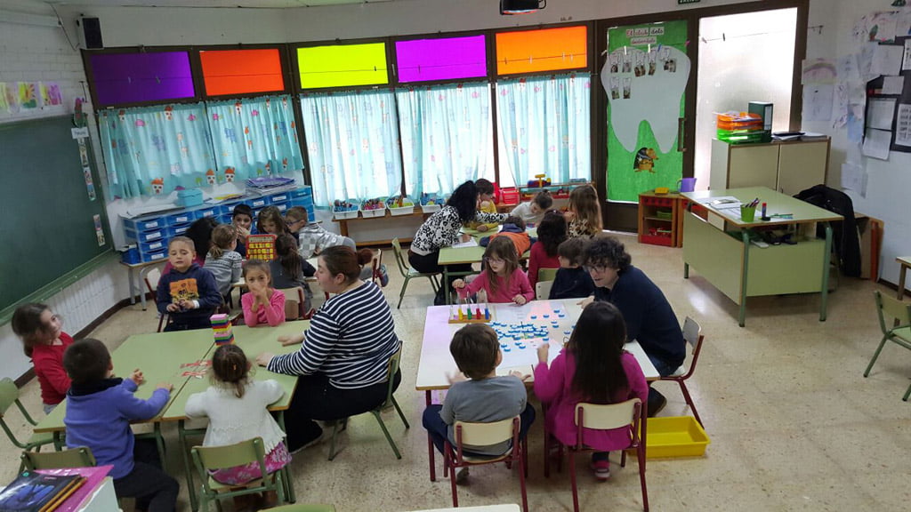 | Crear un clima lúdico, activo y participativo. | En el patio juegan cooperativamente, en equipos, aunque a veces haya conflictos. Pero dentro de la clase hay como diferentes reglas psicológicas no escritas que dicen que en ella tienes que trabajar individualmente. Por tanto hay que aprender a trabajar en grupo (Alabert, 2015:51). |