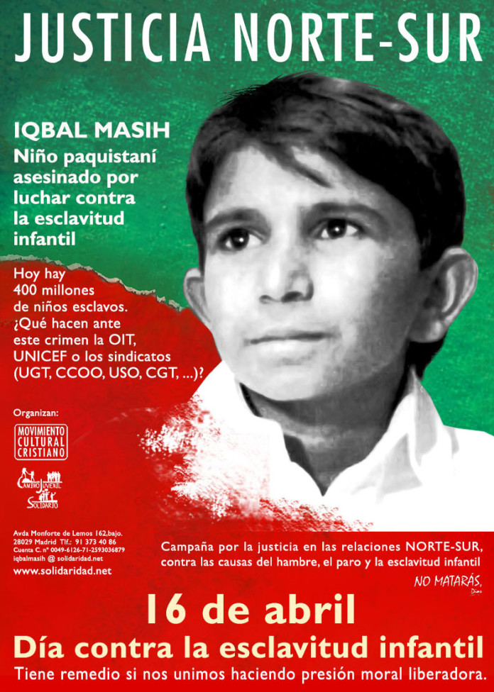 Hoy, Iqbal sigue representando el idealismo juvenil contra la desigualdad del que quiere empaparse el redactor de estas líneas. La lucha contra cualquier forma de explotación se ha de convertir en algo tan primordial para nuestras conciencias como escandalosas son estas realidades de facto.